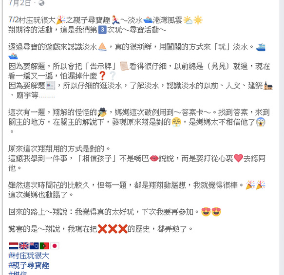 謝謝許多參加過活動的家長貼心的給予我們回饋, 讓我們得以調整改善活動內容,讓未來參加的朋友能夠有更好的活動體驗! 也看到家長與小孩們因為活動的參與,深刻印象之餘; 也得到了些許的收獲~ 這是我們團隊最開心看到的畫面。